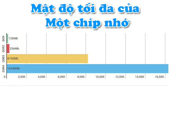 Một điểm nổi trội của DDR3 chính là dung lượng chip được tăng lên đáng kể, có thể nói là gấp đôi so với DDR2. Một chip DDR3 có dung lượng từ 512Mb đến 8Mb, điều này có nghĩa là dung lượng một thanh RAM DDR3 có thể đạt đến 4GB.
